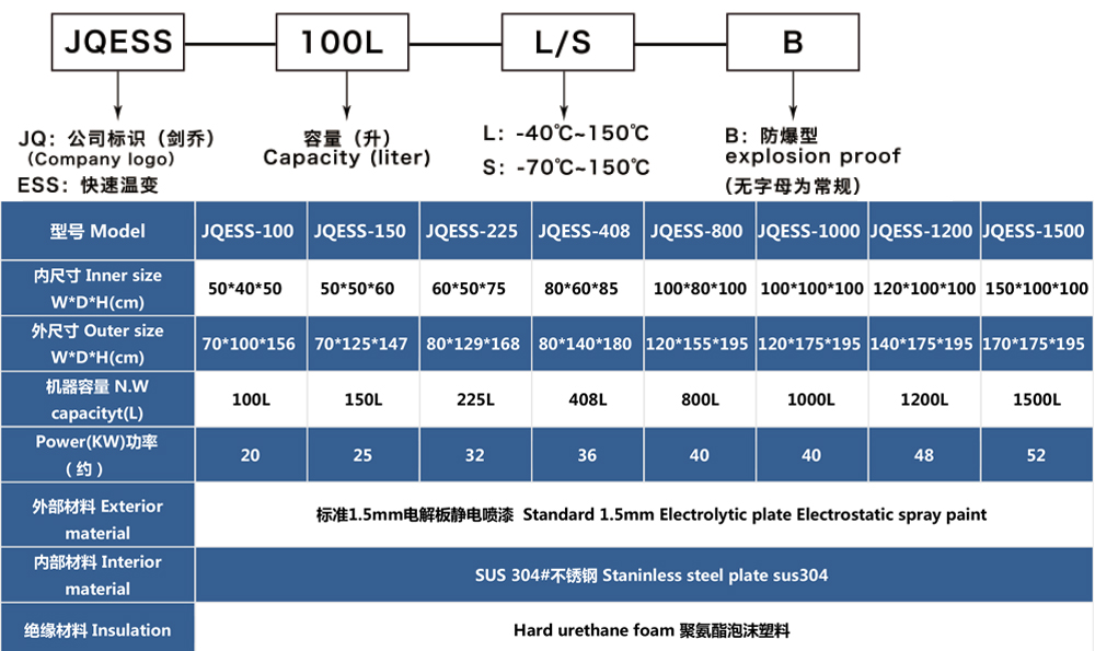 快速溫變?cè)囼?yàn)箱型號(hào)命名說(shuō)明 及 參數(shù)表