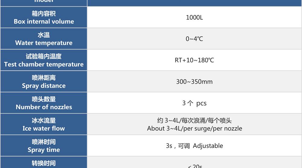 產品型號:JQCW-1000L 品牌:劍 喬 用途:冰水沖擊試驗(浪涌水的溫度沖擊試驗)是模擬部件在駛過積水時而產生的浪涌水的負荷情況,保證部件由于水而急劇冷卻情況下的功能穩定性。如車輛在冬季有水路面駕駛時冰水濺落到熱的系統/組件上,失效模式為不同的溫度膨脹系數導致的材料機械破裂或密封失效咨詢熱線:13829135130